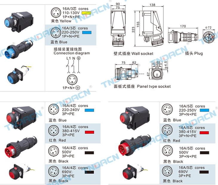2.Reliable interlock function, the plug can be pulled out only after the switch inside the socket chamber is off ,the switch ison only after the plug had inserted.
