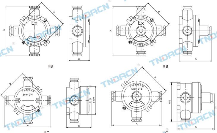 ⅡC类,接线盒外形尺寸 Dimension of ⅡB group junction box